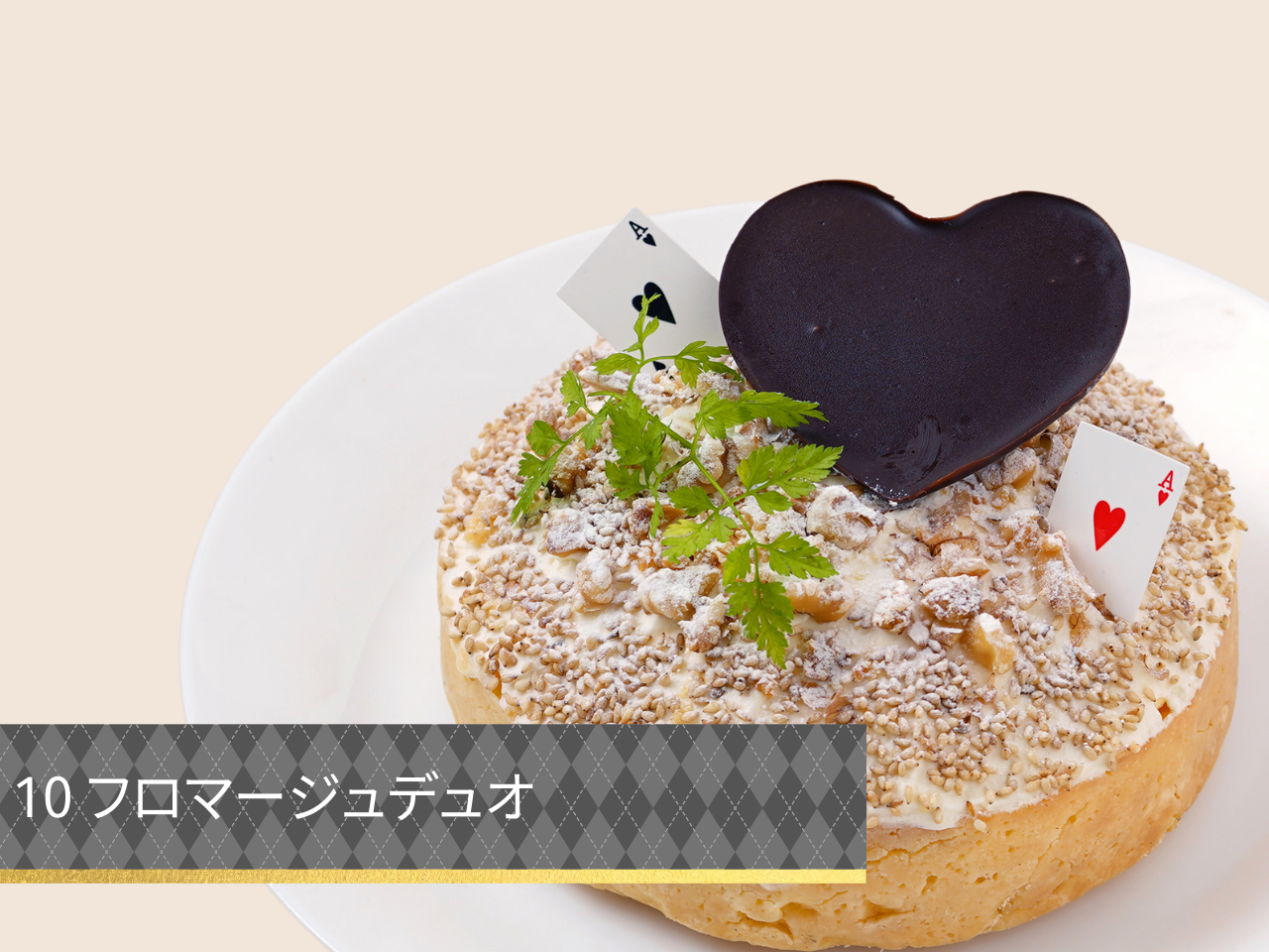 タルトとレアのふたつのチーズケーキを2層仕立てにしたプレミアムチーズケーキ。シュガーナッツやセサミの香ばしいアクセントと共に。